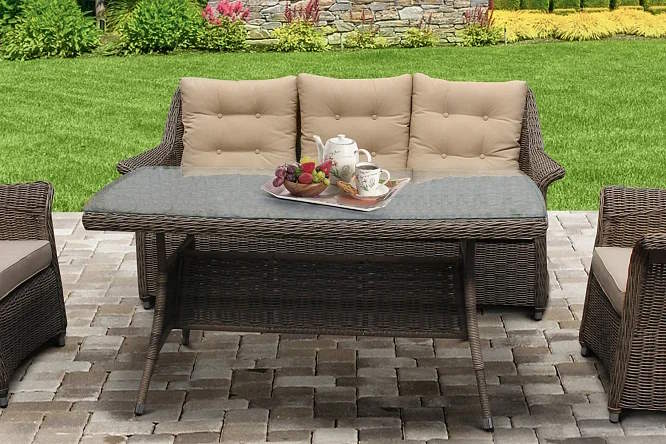 Диван Монтреаль – это классический дизайн мебели, выполненный из современных и прочных материалов. Диван с высокой спинкой и подлокотниками идеально подойдет для установки в саду или на веранде для уютных вечером или организации праздников, когда большая сеьмя или группа друзей собираются за одним столом.