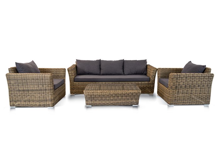 Хотим предложить вам приобрести подушки для комплекта садовой плетёной мебели Больцано, в комплекте есть подушки для двух кресел и одного дивана, спинка и сиденье являются раздельными, выполнены такие подушки в коричневом цвете. У всех подушек есть съёмные чехлы. Предназначены подушки для дивана, размеры которого составляют 220 х 85 х 77 см, а также кресла, размер которого составляет 105 х 85 х 77 см.