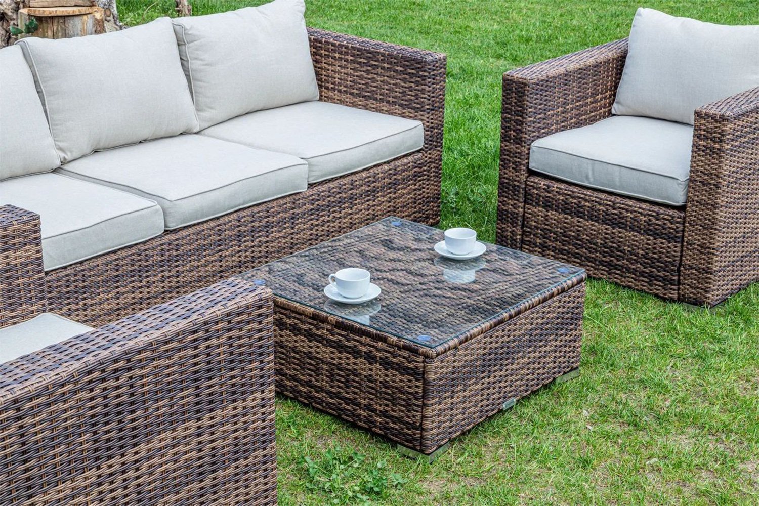 Комфортные места для сидения на природе – залог успешного отдыха. С помощью комплекта уличной мебели Karl коричневого цвета удастся создать лаундж-зону повышенного комфорта, ведь комплект состоит из трехместного дивана, двух кресел и низкого столика, который не будет перекрывать вид на собеседников, но сможет разместить на себе чашки с напитками. Особый комфорт от мебели удается добиться с помощью мягких элементов.