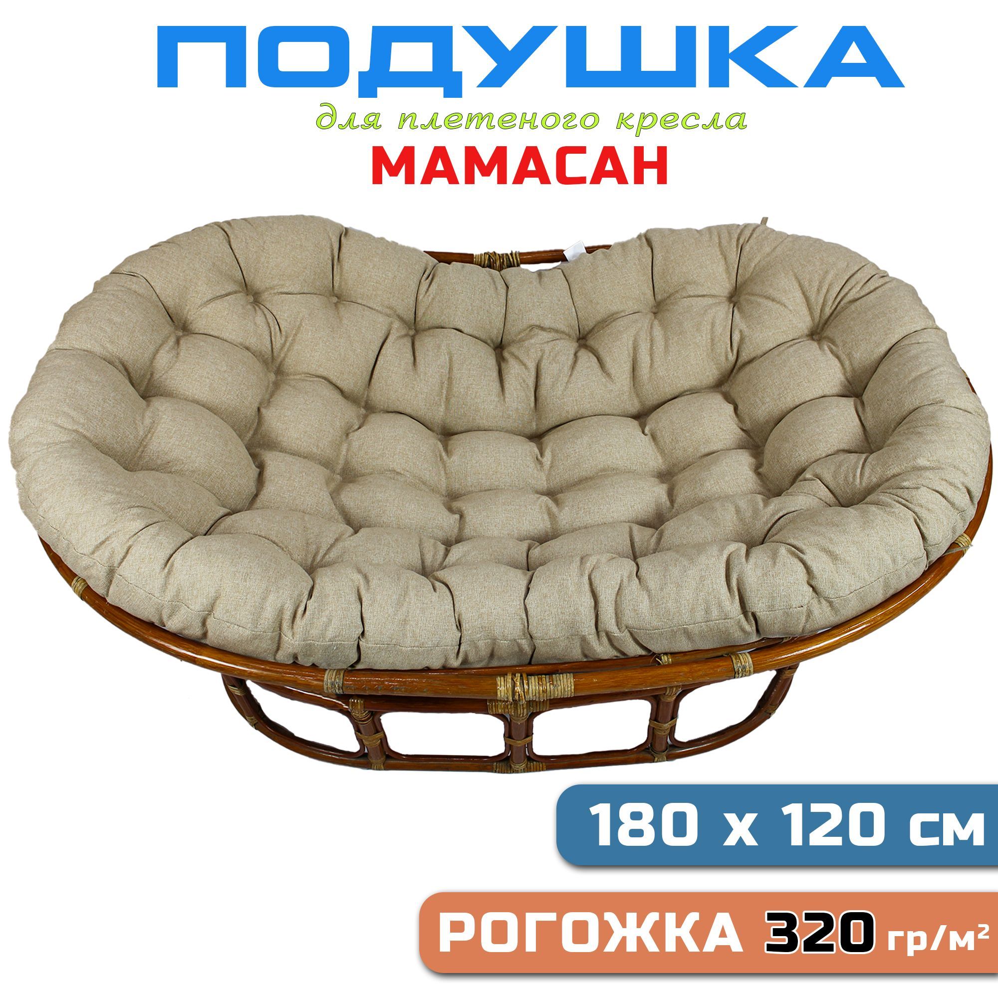 Краткое описание «Подушка для дивана Мамасан, 180х120 см, бежевая рогожка»