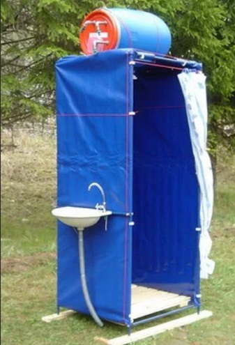 - Тенты для летних душевых конструкций очень легки в уходе, обычный мыльный раствор удалит загрязнения за считанные минуты.