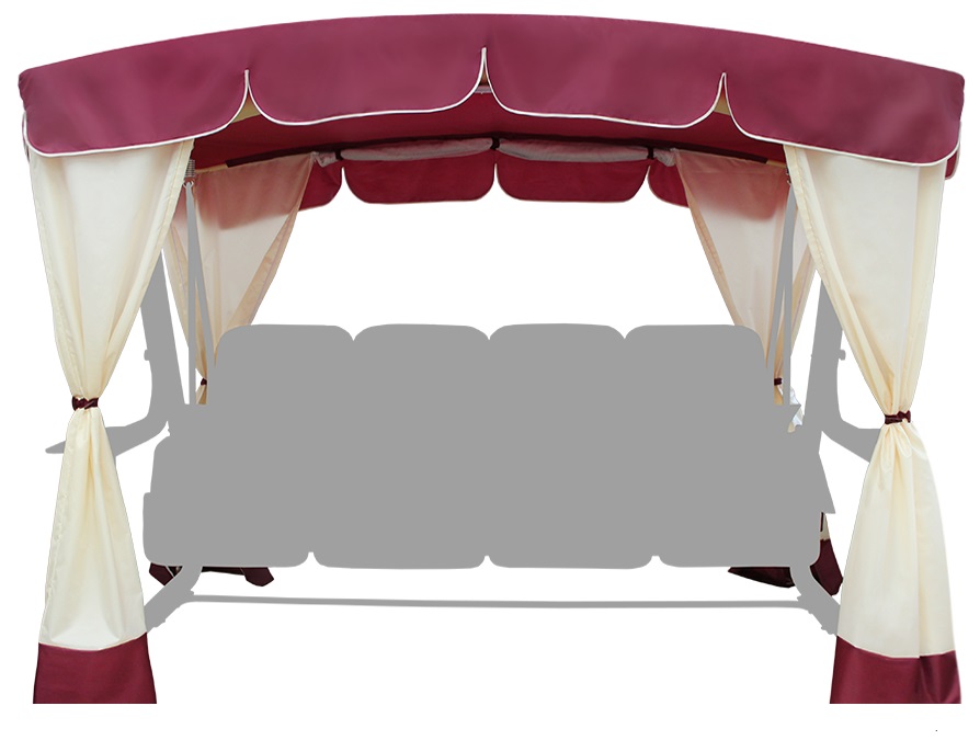 Тент – это красивое оформление садовых качелей, этот материал частично защищает от воздействия погодных условий. Идет в комплекте с мебелью, при его серьезном повреждении обшивку можно заменить, выбрав в каталоге подходящий вариант. Подробные характеристики представлены в описаниях к товарам на этой странице – ознакомьтесь с этой информацией и оформите заказ.